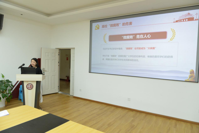 党委联合马克思主义学院党委开展“同上廉政课,共筑防火墙”联建共学活动。本次活动由马克思主义学院“讲好思政课”宣讲团成员为我院学生党支部全体党员讲授廉洁自律廉政课,进一步引导青年学生党员不断夯实理论基础,树立廉洁意识,筑牢思想防线,做到廉洁从学。