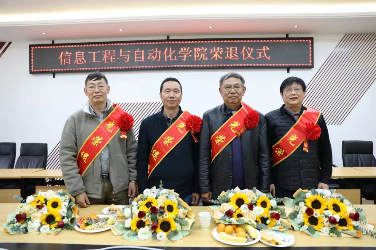 在信自楼237会议室举行教师荣退仪式,在座谈会上,学院领导和教师代表纷纷向王晓东、李彬华、资滔、张力四位退休教师表达了最崇高的敬意和最衷心的祝福。