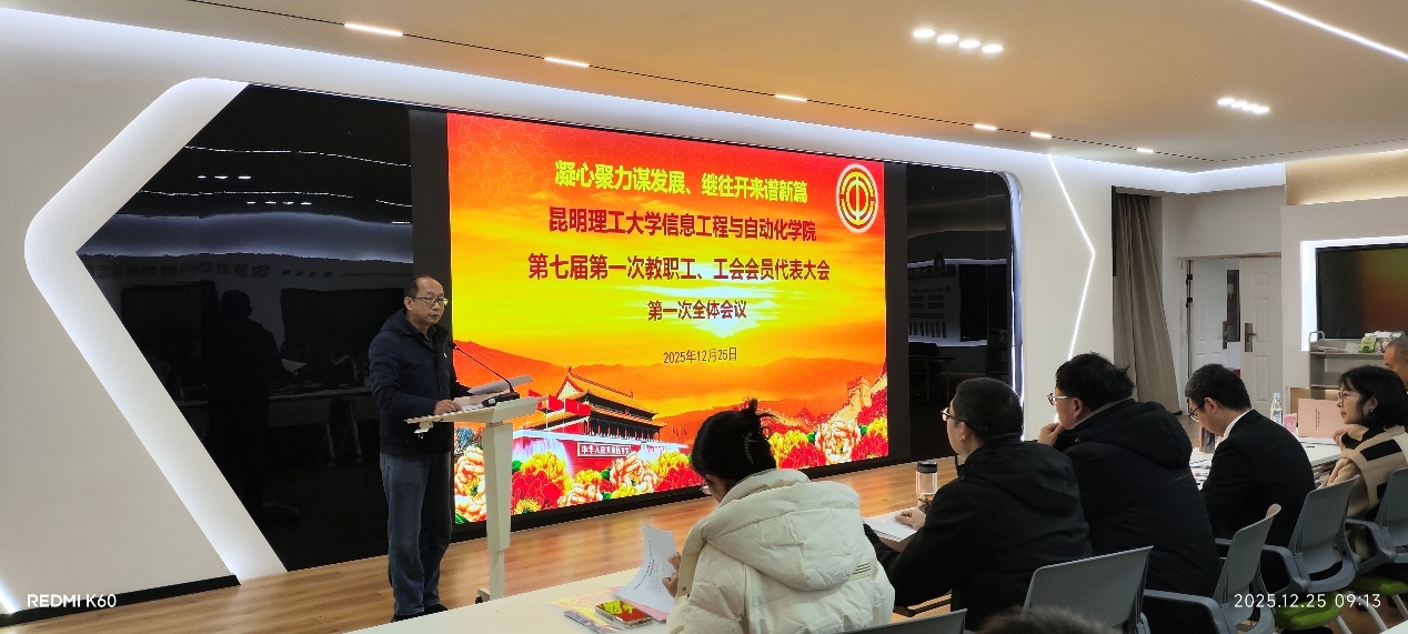 2025年12月25日上午,AV视频 第七届第一次教职工暨工会会员代表大会在信自楼126会议室举行。本次大会应到正式教代会代表 55 名,实到52名,1名列席代表全程参会,全体代表齐聚一堂,共商学院高质量发展大计。校妇联副主席周鹭亲临现场指导。