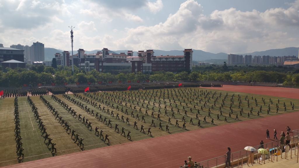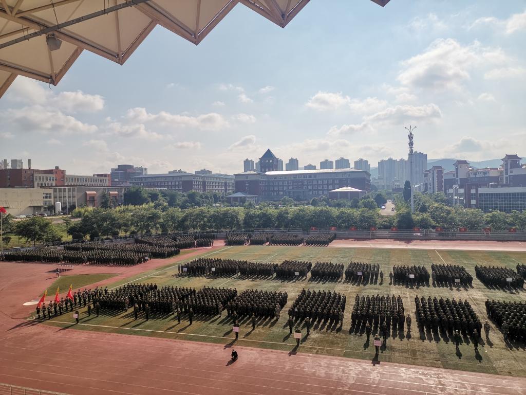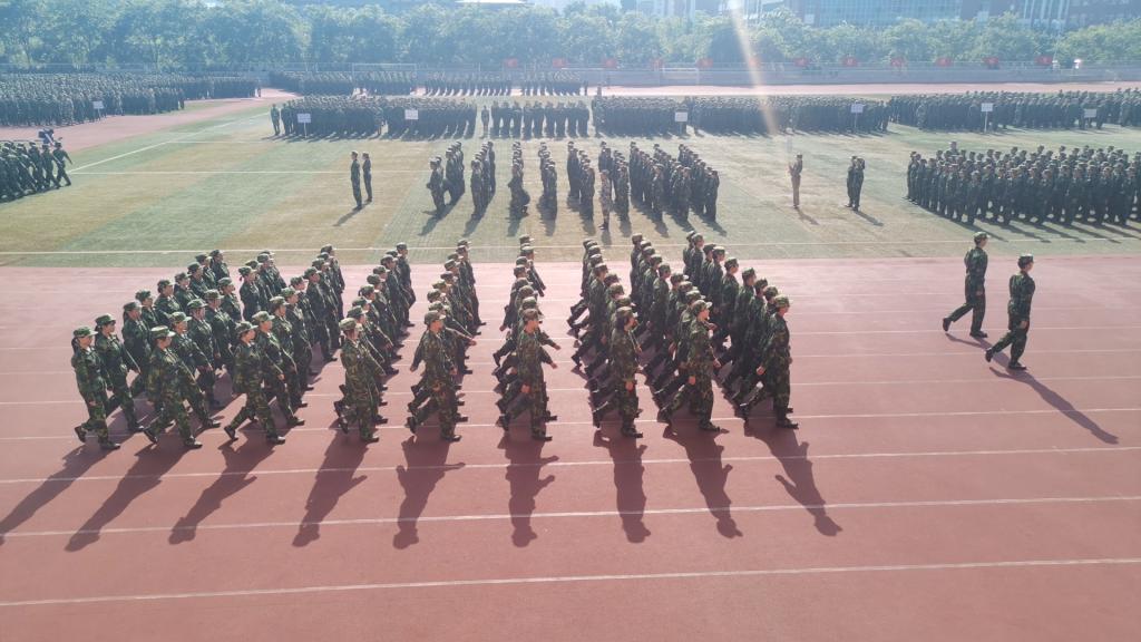2022年7月14日上午8:30,AV视频 在恒园体育场隆重召开2021级军训成果展示暨军训工作总结表彰大会,AV视频 全体2021级参训学生集体接受学校检验汇报军训成果。600余名信自学子口号嘹亮、身姿挺拔、动作整齐、气势磅礴迎接了检阅。