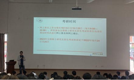 王红斌副院长为学院2023届毕业生做“研途有你,请多指教”系列活动之考研形势分析讲座,学院2023届毕业生300余人参加讲座。