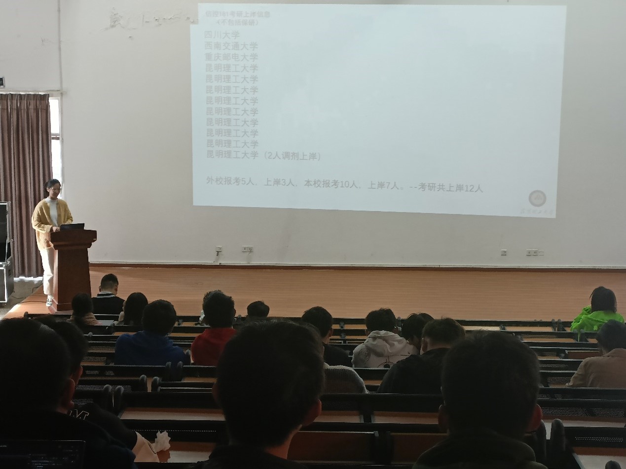 “研途有你,请多指教”系列活动之考研经验分享会,本次分享会邀请学院原数科181朱铠迪、原信控181郭涵、原自动化181刘召祥三位考取我院研究生的同学进行考研经验分享。学院2023届毕业生200余人参加此次活动。