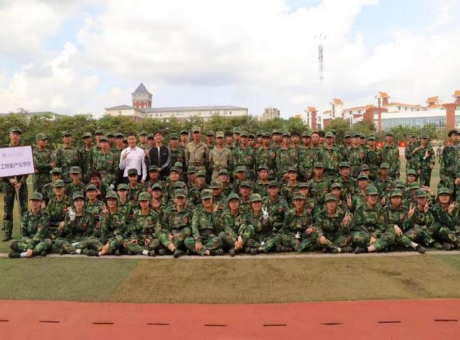 武装部组织的军事训练。在训练场上,身着迷彩服的同学们在教官的带领下完成了军姿训练、模拟实战射击、“毒气泄漏”演练、匕首操、军体拳、刺杀拳等训练科目。