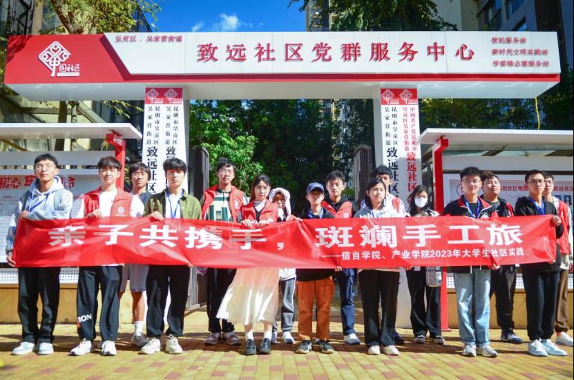 、人工智能产业学院组织学院青协、6个团支部、学院“青马工程”青卓班学员,共同前往昆明市呈贡区致远社区举办以“亲子共携手,斑斓手工旅”为主题的“团团陪伴,助力双减”大学生社区实践活动。