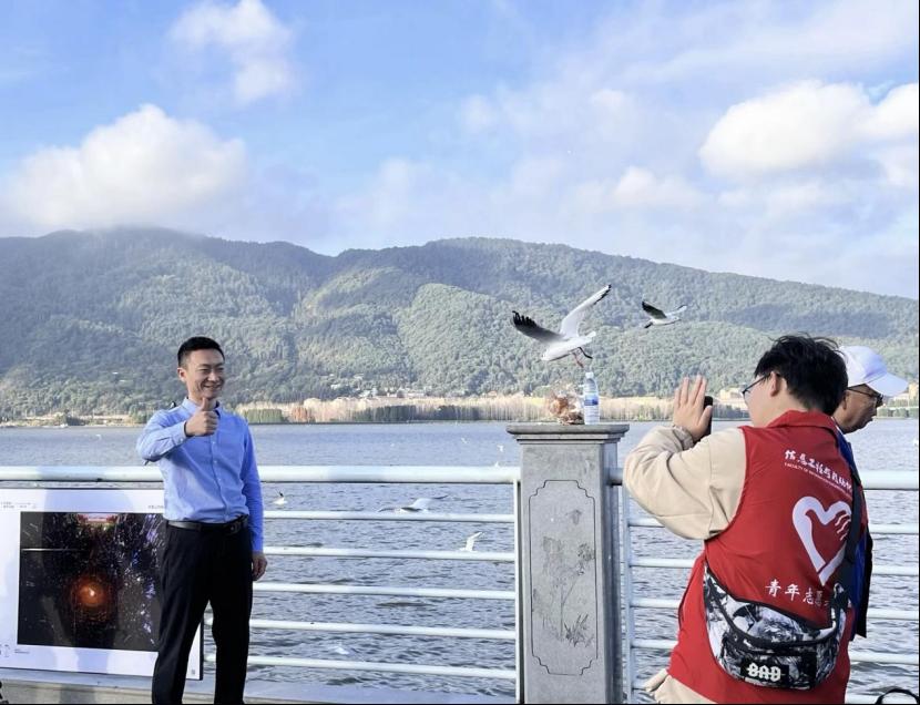 活动过程中,志愿者们身穿红马甲,分组行动,积极开展海埂大坝的清理活动,对海埂大坝的垃圾进行处理,为海鸥营造一个干净整洁的生活环境。同时,志愿者们通过开展“我与海鸥合影”摄影活动,为市民与海鸥拍照留念,展现了人与自然和谐相处的昆明。