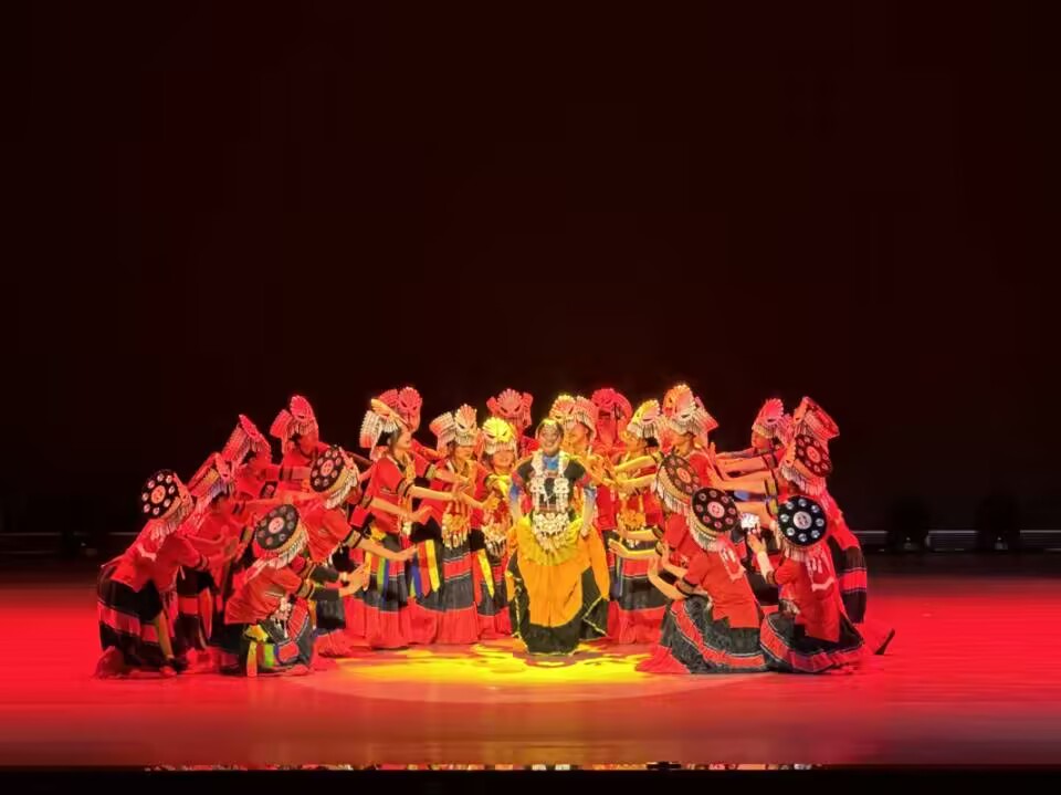 舞蹈《盛装·礼赞》以彝族文化为背景,展现了彝族姑娘身着盛装,在彝人古寨的群山之间翩翩起舞的场景,向观众展示了彝族文化的魅力,并礼赞新时代传统文化的价值与千年巨变的幸福新生活。大赛舞台上,信自学子、产业学子以灵动的舞姿、优美的姿态展现出了蓬勃朝气与青春活力,使得观众眼前一亮,现场掌声雷动,给大家带来了一场难忘的视觉盛宴。