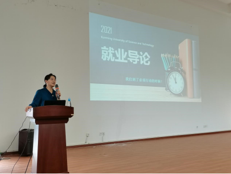 9月14日下午,校党委李莉副书记、就业指导中心洪云副主任在信自100报告厅为学院大四学生开讲大学生就业导论课。